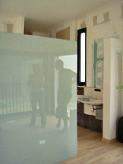 -maison lumineuse et vitrée, agréable à vivre, en se protégeant du soleil et des vues extérieurs.
