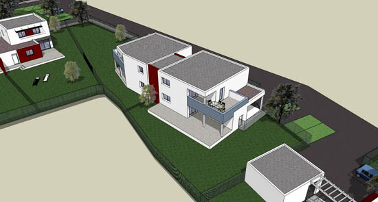 Créer 30 logements de type P2 à P5 avec des grandes terrasses, orientés au sud, repartie dans 18 « maisons-jumelées », soit 9 bâtiments en R+1.